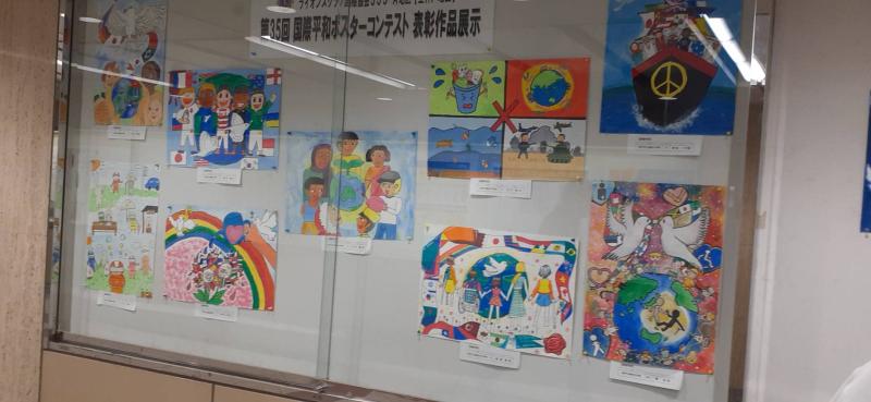 「第35回国際平和ポスターコンテスト」入選作品34点(最優秀賞・優秀賞・金賞・銀賞・銅賞・佳作)を神戸市の「さんちか花時計ギャラリー」にて、3月16日(木)~3月22日(水)まで展示いたしました。春休み中ということで、先生方、ご家族をはじめ大勢の方が見に来られました。