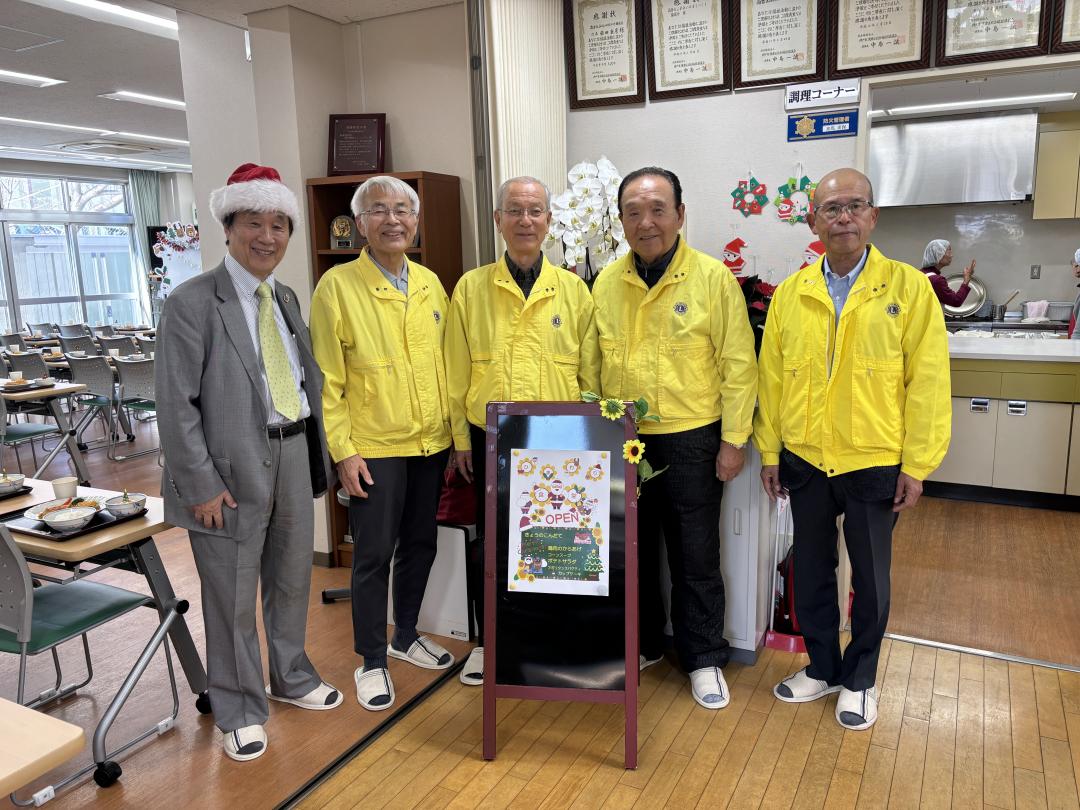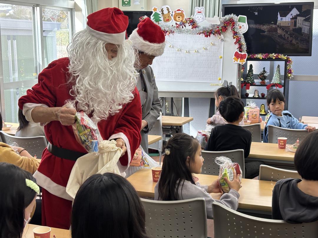2025年12月20日(土曜日) サンタクロースが『こどもの居場所』を利用するこども達に直接手渡す会その2を高倉台地域福祉センターの『ひまわりこども食堂』で行いました。このこども食堂は30数名のこども達が利用しています。 サンタクロースが登場すると喜びの声が響きます。クラブメンバーも一緒に手分けしてプレゼントを渡しました。